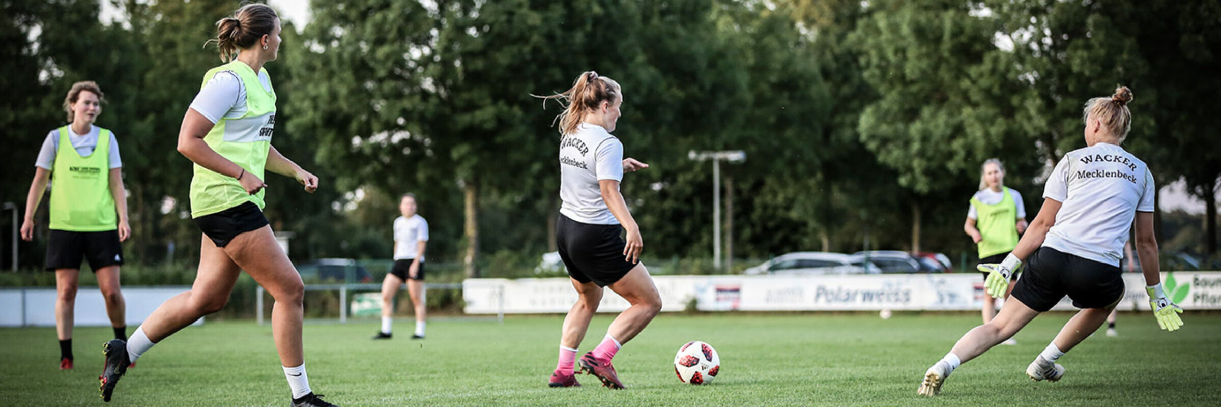 So geschehen in unserem Pokalspiel beim Bezirksligisten 1. FC Gievenbeck. Schon mit der Ausführung des Anstoßes war klar, wo dieses Spiel hinführen sollte: Die Erwartungshaltung der Zuschauer war aufgrund der zwei Klassen Unterschied hoch, doch die Gegnerinnen taten alles, um das erwartete Spektakel zu vermeiden. In einem 5-3-2 organisiert, lag der Fokus darauf, uns den Weg zum Tor so weit wie möglich zu machen und uns immer wieder zu zwingen, auf den Flügel auszuweichen. Kaum Tiefe wurde hinter der Kette, geschweige denn zwischen den Linien, angeboten. So war es kaum möglich, in den torgefährlichen Räumen aufzudrehen und zwingende Torchancen herauszuspielen.