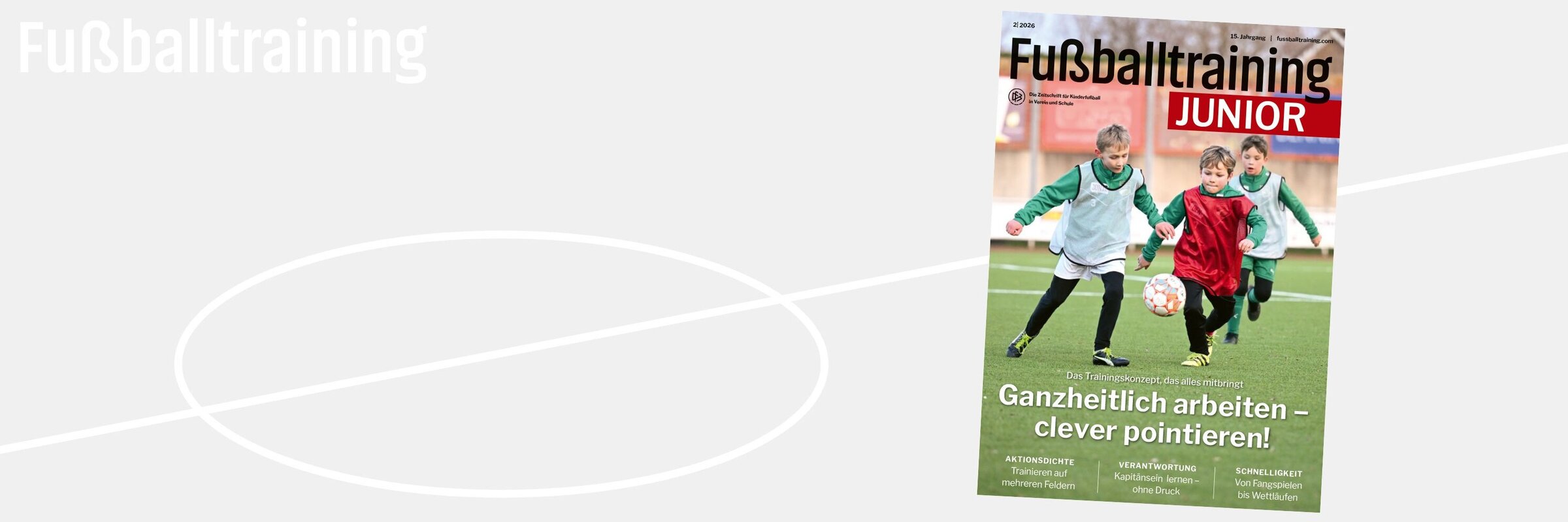 Der Heftschwerpunkt dieser Ausgabe steht unter dem Titel „Ganzheitlich arbeiten, clever pointieren“. Im Zentrum steht die Frage, wie du Kinder und Teams umfassend entwickelst und gleichzeitig einzelne Inhalte gezielt schärfst. Daniel Stredak eröffnet mit Besser als der Bolzplatz den Blick aufs ganzheitliche Trainieren und darauf, wie du Spielfreude, Technik und Entscheidungsverhalten im Trainingsalltag zusammenbringst. Ergänzend liefern Lena Lotzen mit Wer fummelt gewinnt (Pointierung des Dribblings mit Steuerungsmitteln und Provokationsregeln), Lars Stindl mit Abspielen macht Tore (Pointierung des Passspiels mit Steuerungsmitteln und Provokationsregeln) und Mike Hanke mit Drei Schüsse, ein Tor (Pointierung des Torschusses mit Steuerungsmitteln und Provokationsregeln) drei klare technische und grundlegende Pointierungen, die du direkt für deine Einheiten übernehmen kannst. Dazu klärt Antonio Di Salvo in Mehr Felder, mehr Fußball den Begriff des Mehr-Felder-Prinzip aus der Trainingsphilosophie Deutschland. Wie du innerhalb der Mannschaft noch individueller arbeitest, zeigen Thomas Impekoven und Johannes Ederer in Jeder Spieler zählt, und jeder ist anders.