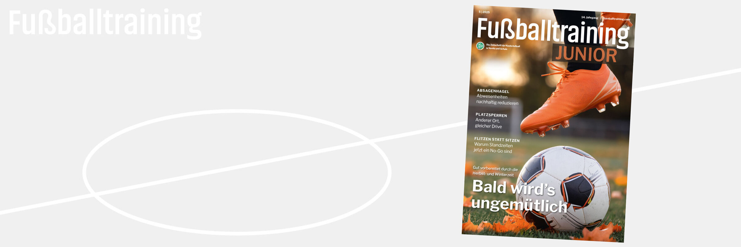 Der Großteil unserer Beiträge befindet sich in der aktuellen Ausgabe 05-2025 im Heftschwerpunkt, der sich rund um die die kalte Jahreszeit dreht und wie du als Trainer verschiedenen Herausforderungen begegnen kannst. Elke Opitz steuert gleich drei Artikel bei: Eingeleitet wird unser Schwerpunktthema mit „Happy Herbst“ und einigen allgemeinen Tipps und Regeln für diese Jahreszeit. Zusammen mit Jonas Hedwig schreibt sie in „Ausreden gibt es immer – Chancen auch!“ darüber, wie du einem plötzlichen Absagenhagel begegnen kannst und mit variablen Trainingsformen auf unterschiedliche Gruppengrößen vorbereitet bist. In ihrem Beitrag „Platzsperre – na und?“ zeigt die langjährige FTJ-Autorin alternative Trainingsmöglichkeiten auf, die auch außerhalb des Rasens funktionieren. FTJ-Redakteur Marc Kuhlmann liefert mit „Bewegung statt Stillstand“ aktivitätsreiche Trainingsformen, die du bei Schmuddelwetter auspacken kannst. Außerdem liefert er die Bambini-Spielstunde „Im Herbstwald“. Unser Redakteur Jonas Hedwig beantwortet die Frage “Futsal – auch draußen eine Option!?“. Dank Thomas Staack und seinem Trainingskatalog „Von O bis O“ musst du dir keine Sorgen mehr um die Trainingsgestaltung in der Hallensaison machen. Die Spielertypen-Serie Teil 5 von Claus-Peter Niem passt mit „Der Dauerkranke“ in dieser Ausgabe in den Heftschwerpunkt und rundet diesen ab.