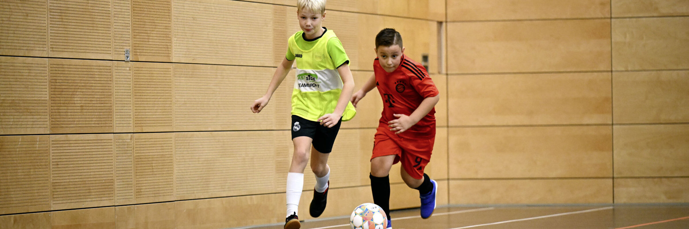 Unter anderem zahlreiche direkte Duelle sorgen bei den E-Junioren für eine große Begeisterung beim Hallentraining.