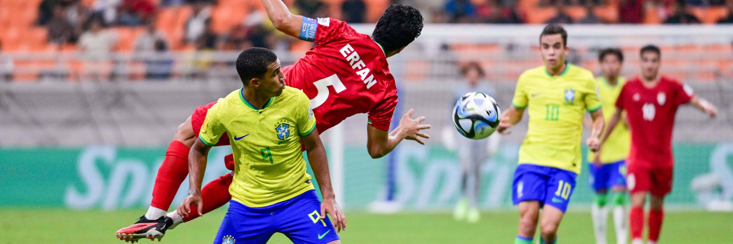 Die Iraner verteidigen die Standardsituation mit einem Mix aus Raum- und Manndeckung, wobei jedoch nur die kopfballstarken Brasilianer gedeckt werden. Diese bewegen sich mit der Ausführung der Ecke in Richtung 5-Meter-Raum, während sich Lorran und Rayan in Richtung Rückraum absetzen. Die drei Zielspieler der brasilianischen U17-Auswahl haben die gesamte Aufmerksamkeit der Iraner auf sich gezogen, wodurch niemand die Laufwege von Lorran und Rayan bemerkt. Dudu agiert als Block, um ein mögliches Einschreiten der Iraner zu verhindern.