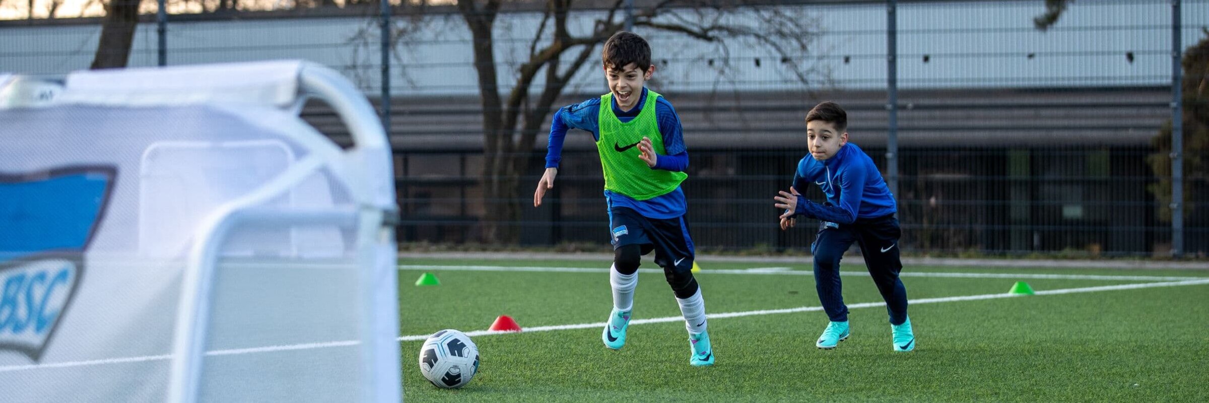 Sich im direkten Duell zu messen und im Anschluss auf ein Tor abzuschließen, bereitet den F-Junioren große Freude. Gleichzeitig ist es eine ideale Übung für das Behaupten bzw. Erobern des Balles. Die Kreativität der Kinder wird gefördert und sie probieren mutig die verschiedenste Lösungen aus.